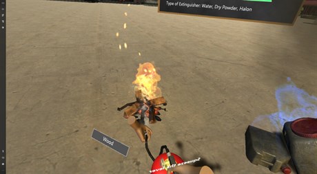 Fire Safty Training VR System include knowledge of fire classification and how to use different types of fire extinguishers. In the system user can grasp extinguisher and squeeze the lever to put out fire.