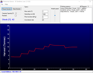 Fisherman is a multi-user game, which means that students will be playing with each other, all connected to the same lake through a local area network (LAN). The game leader will operate the server, a separate application, that hosts the lake.