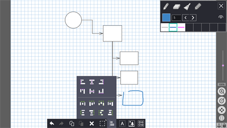 An intuitive application enabling easy creation of flowcharts, diagrams and schematics, for use, for example, in presentations. Equipped with a feature for recognizing hand-drawn shapes and connections, as well as the ability to add handwritten annotations to the schematic.