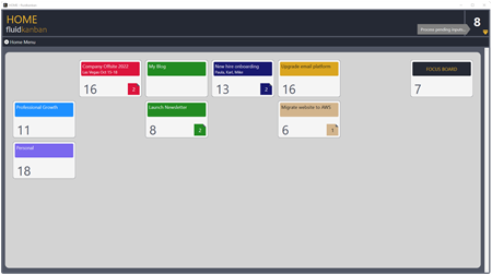 Tactile and effortless, Fluidkanban is optimized for the digital professional that works on a desktop environment with a large screen or multiple monitors. Fluidkanban uses your graphics card to render its beautifully designed user interface, smoothly zoom-in / zoom-out of boards, drag and drop to organize your thoughts and actions using the full real estate of your screen(s).