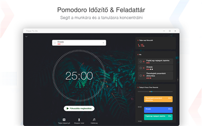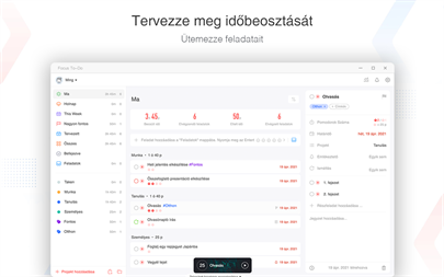 A Focus To-Do alkalmazás ötvözi a Pomodoro technikát egy feladattárral. Ez egy tudományos módszeren alapszik ami segít fenntartani a motiváltságot, az elvégzett feladatok pontos követésével.