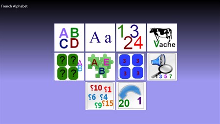French Alphabet is a small learning and playing application for kids to learn the French alphabet (les lettres et chiffres français ).. With memory game and find letter game. User can hear the pronunciation of each French letter, with an example for a word and photo. And numbers pronunciation from zero to ten. This application contains two different games: - A memory game hiding some letters! - A “Find a letter game” using pronunciation.