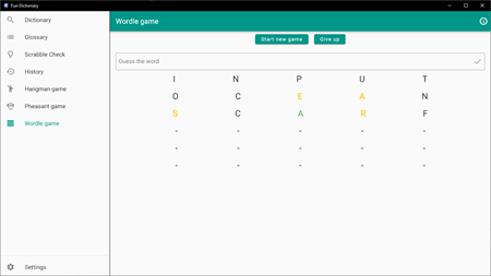 Fun Dictionary is an application that helps you find words in offline and online English dictionaries, play Hangman, Pheasant or Wordle games and much more.
