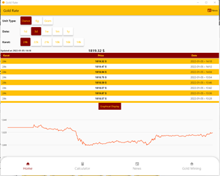 This app does not support Windows 10 S. Smart gold rate tool, using a large data containing a variety of gold information's: prices, karat and unit type, all data will be updated periodically, and manipulated with smart filter: Filter prices by unit type (ounce, kilogram and gram), Filter prices by specific date (last day, last three days, from one week, one month and since one year. Filter prices by karat (24k, 22k, 21k, 18k, 16k and 14k) Table will display the prices every couple of minutes, Chart or graphical data representation based on selected filter. Gold Price Variation can be tracked, using the automated calculus you can define a rules based on gold criteria, when the rules are applied you will receive a push notification even your browser is closed.