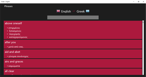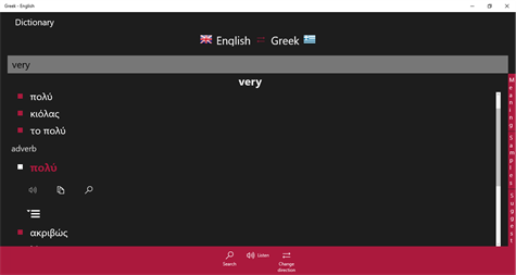 This application is an offline English ↔ Greek dictionary and translator. This is a very fast dictionary app.