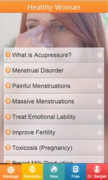 √ Relieve woman's diseases on your own Without Medications using Traditional Chinese Massage Points √ Easily find the right Massage Points with simple Full HD Videoclips and Photos √ Never forget a Massage with a built-in Reminder