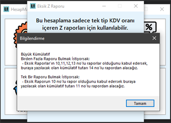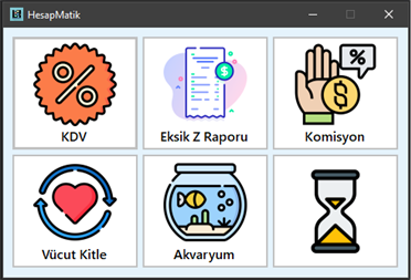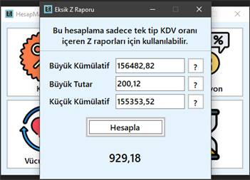 İçerisinde barındırdığı hesaplayıcılar: -KDV Hesaplayıcısı -Eksik Z Raporu Bulucu -Komisyon Hesaplayıcısı -Vücut Kitle Endeksi Hesaplayıcısı -Akvaryumunuz İçin Gerekli Bir Takım Hesaplamalar