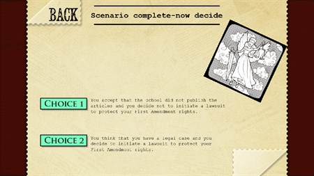High School Social Studies takes you through a number of scenarios informing how your first amendment rights are able to be upheld through the judicial process. You're the editor of a school newspaper who had several articles suppressed by the principle of your school. Talk with your own lawyer along the way showing you your options as you make it all the way to the Supreme Court!