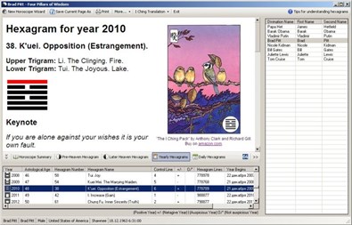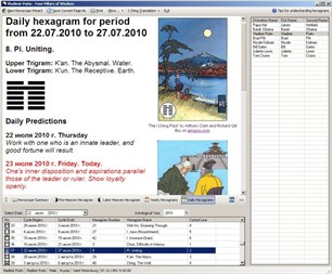 Working with the program, you get personal birth chart based on I Ching (Chinese Book of Changes) which represents a figured description of forces and influences following you during your lifetime.
