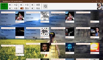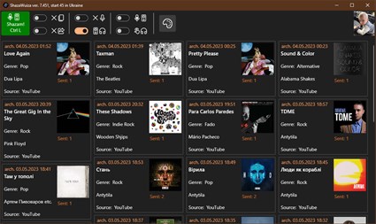The program listens to music on your computer and identifies the track using a service on the Internet. The result is displayed on the screen and sent to the clipboard (in the format: I used to detect Money For Nothing by Dire Straits) and to an external program. The text in the clipboard can be parsed by the program "Data for LastFM" and the track will be scrobbled by the last.fm service. The program is controlled by buttons, toggles and context menus.