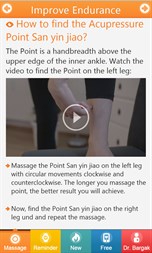 √ Increase Your Sport Performance on your own Without Medications using Traditional Chinese Massage Points √ Easily find the right Massage Points with simple Full HD VIDEOS and Photos √ Never forget a Massage with a built-in Reminder