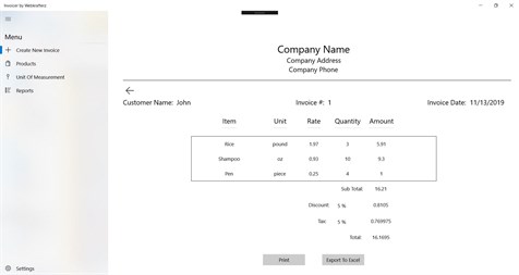 Invoicer helps you create invoices for your customers. It is very easy to use application and helps you export your invoice in excel or pdf.