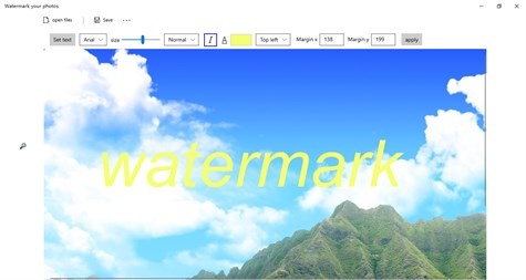 Egy nagyon praktikus vízjelölő eszköz, vízjeleket adhat a képekhez tételekben. A szoftver üzemeltetése nagyon egyszerű. Beállíthatja a szöveget, betűtípust, méretet, színt, dőlt betűt, pozíciót, margót és stílust.