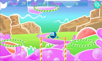 The definitive Jumpie Jump is a best arcade adeventure game. This is addictive Jumpie game. There is a sling bird so called jumpie that will be under your control. Touch the Jumpy and drag to setup the angle and power for jump ! Try to aim the loops. Pass through all the loops to clear level and collect as many points as possible ! You must fly through all the rings to unlock the next level. If jumpie jump fly through the ring without crashing,it will remove the candy ring. Jumpie jump is a game that require a little bit of skill !