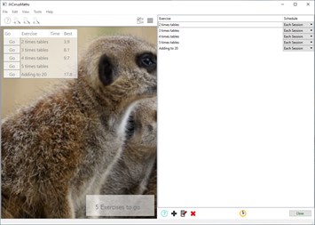 JXCirrus Maths is a maths training application aimed at primary school children. It focuses on basic arithmetic: Times tables, addition, subtraction and division. It will let you set up exercises that are run each day, and then records the best time and lets you race against that.
