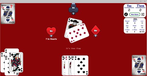 Kaiser is a card game that has been played for many decades in Saskatchewan. The game is played with 32 cards and 4 players. 2 Teams compete by bidding and taking tricks while trying to acquire the 5 of Hearts but avoid the 3 of Spades.