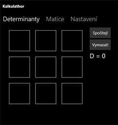 Aplikace Kalkulathor je kalkulačka pomocí které hravě vypočtete - Determinanty a Matice.