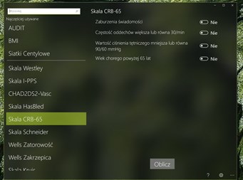 Aplikacja zawierająca kalkulatory, siatki oraz kwestionariusze medyczne. ------------------------------------------------------------------------------- Aplikacja na system Windows Phone 8.1 nie jest wspierana! ------------------------------------------------------------------------------- - BMI - Kwestionariusz Beck'a - Skala Chad2ds2vasc - Siatki Centylowe wg WHO - Skala ABCD2 - Kwestionariusz Audit - Kwestionariusz Fagerstrom - Obliczanie GFR - Skala Hasbled - Obliczanie Powierzchni ciała - Obliczanie daty porodu/ długości trwania ciąży - Kwestionariusz Schneider - Skala Centora - Konwerter dawki glikokortykosteroidów - Obliczanie wapnia skorygowanego - Całościowa Ocena Geriatryczna (* fragment) - DAS28 - Skala depresji Hamilton'a - Skala CRB-65 - Obliczanie QTc - Edynburska Skala Depresji - Pol-SCORE - ICD-10 - Skala Kruis - Kolejne w trakcie opracowywania...