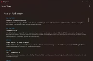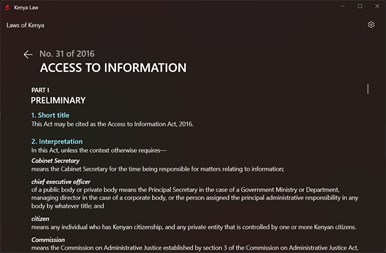 Read and reference the laws of Kenya in a comfortable and unobtrusive manner. The law database is regularly updated, so you won't miss the latest updates