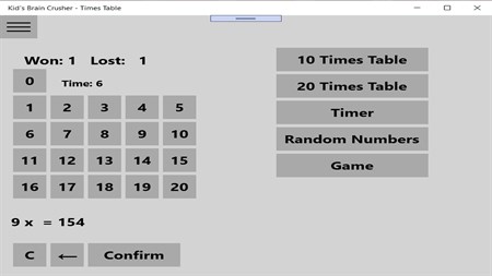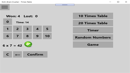 The Multiplication Table in 1x1 and 10x10, you can play it with Rounds, against Time and random numbers. Perfectly for elementary school pupil and for everyone as a memory trainer.