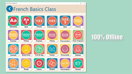 - 100% Free French Learning - 100% Offline - No Account Needed, No Sign In, No Sign Up - You will learn French from Scratch, No prior knowledge of French needed. - Free French Translator Included. Translate anything, anywhere, whenever you want. - 10,000+ French Vocabulary - Fun and effective game like lessons.