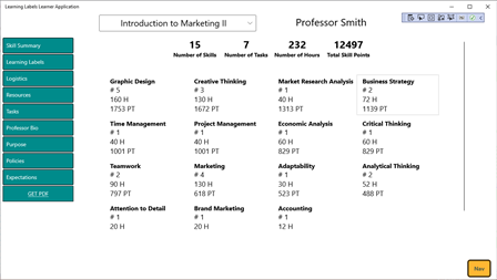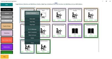 This app focuses on the learner or worker. Designed for a learner or worker to manage a 'Collection' of tasks (represented as learning labels). There is a built in search for learners to find learning or job labels and bring them into their collections.