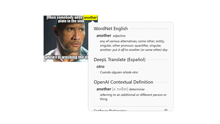 Lookupper works seamlessly in all applications, including browsers, books, picture captions, movie subtitles, and windowed games.