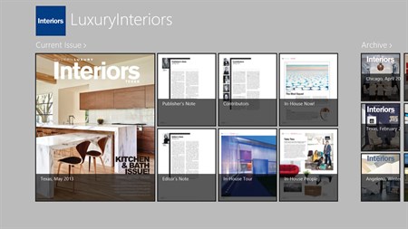The Interiors magazine app offers a luxury home design resources for both the design conscious reader and the industry professional. With interactive page flipping, a zoom feature, bookmarking, searching and sharing your favorite articles allow an enhanced magazine experience right anywhere and anytime you choose to read.