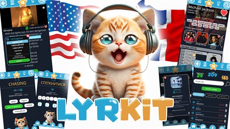 Lyrkit - це 1 000 000 пісень із відео та текстами що об'єднались в одну захоплюючу гру по вивченню англійської мови. Не втрачай часу, починай вивчати англійську мову за допомогою Lyrkit вже сьогодні! Музика - це ключ до неймовірного світу мовного розвитку, а Lyrkit – твій ідеальний у цьому помічник!
