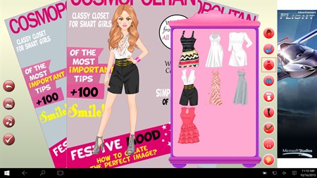 Pretend that you are an editor for a popular fashion magazine. How would you style the cover model? Play with different clothes, colors and accessories until you are happy with the results!