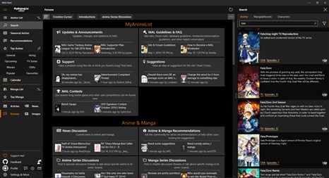 The most complete unofficial UWP client for MyAnimeList, built for Windows 10! Features : • Manga and Anime support. • Browse your own list as well as other's. • Update your anime entries, including tags. • Check anime reviews. • Lurk&Post on native Forums. • Browse related anime. • View top anime and manga. • Search for new anime in MyAnimeListdatabase. • Pin anime series with customizable tiles. • Search for characters! • Character&Staff details. • Read MAL news & articles. • Read and send MAL messages. • View your history. • Be up to date with your friend's updates! • Watch promotional videos. • Profile comments. • MyAnimeList notifications. • Add and remove favourite shows, characters etc. • Check your own profile stats , favourites etc.. • View currently airing anime. • Dark and Light themes. • Browse most recent recommendations. • No ads , no blocked features. • Open source. • Wallpapers/images browser!