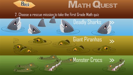 In addition, the quiz format has also been given an extreme make-over. There are 3 different themes that the quiz is based on. The themes are the "Deadly Sharks", "Monster Crocs" and the "Giant Piranhas". The different themes, interactivity and animation of the quizzes aim to provide a fun and engaging learning environment for the young learner to enjoy the learning process.