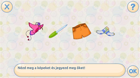 A csomag 7 játékot tartalmaz 4-7 éves korú gyerekeknek, melyek a memóriát és a figyelmet fejlesztik: