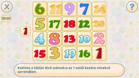 1. "Találd meg az összeset" - fejleszti az összpontosító képességet 2. "Kinél melyik szám van?" - edzi az emlékezőképességet 3. "Keresd a számokat" - fejleszti a rövidtávú memóriát 4. "Paletta" - fejleszti a memóriát 5. "Memorizáld a képeket" - fejleszti a memóriát 6. "Reakció" - a figyelem összpontosítását tanítja 7. "Memóriajáték" - fejleszti a memóriát