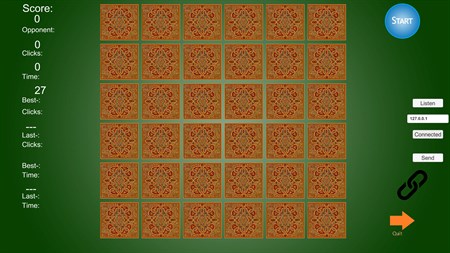 Play Memory Game Fruits via the internet or LAN in an educational and entertaining way. Find matching pairs of 'cards' with pictures of Fruit in as few clicks or time as possible (solo). Connect: First type both the IP address in the inputfield of your opponent during the Game. Hit the [Enter] key. Then use both [Listen] to be clicked once during the process of making the Connection on both ends of the Connection in the two instances of the Program (required). Let you and your friend make sure you both typed in the IP address of the Player on the other end across the network in an inputfield and press both [Connect], virtually at the same time together. Some Modem Port forwarding Settings may be necessary for you to make (both only once, yielding for all of my internet Games then), to let this program work. See the manual on my website: https://hannopondaag.github.io and also discover your IP address there via a Link. UPnP IGD should be on. And make the rule for portforwarding in your Modems (only one rule for all of my programs required thus). Mind your Local IP Address corresponds with your setting on your Modem when using the WAN at a home network situation and set portforwarding then to use port 1200 on your Modem. No ads.