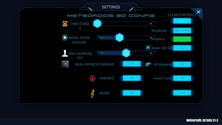 6.- What if you don't want enemies and just want play the old way, destroying meteors? Deactivate enemies and that's it.