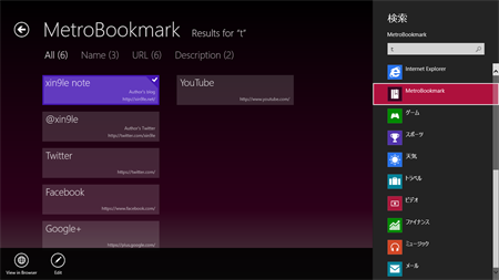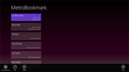 MetroBookmark is a simple & efficient Bookmark Management Tool. You can add, launch, search and share the bookmarks with other apps in the device.