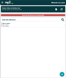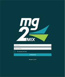 MG2MIX est une application propriétaire destinée techniciens MG2MIX. Lors de la première initialisation, il est nécessaire de posséder un compte client.