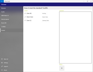 It provides the user with the ability to undertake location based audits such as Cleaning to the NHS national standards in operation throughout the UK and Ireland.