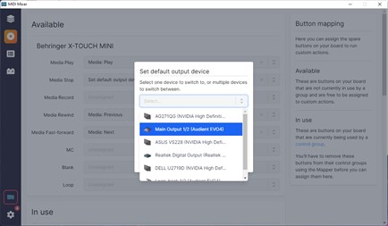 Change the volume of - or mute - any application or device on your system and use any MIDI controller to do it. Plug'n'play with built-in presets, or build your own profile and customise to your needs, supporting use-cases like cross-fading apps and homebrew devices.