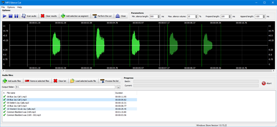 MP3 Silence Cut is a powerful MP3 audio file splitter. Automatically cuts MP3 files by silent parts, with batch processing support. No re-compression is performed, the resulting output files are 100% the quality of the original.