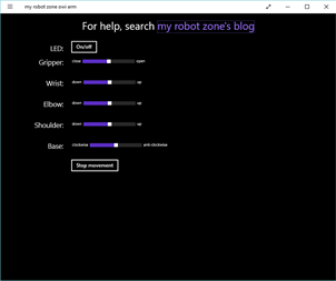 The LED is also supported and a "Stop all movement" button helps to avoid collisions.