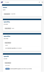 Le dictionnaire Rosgovas est la référence des dictionnaires français-grec grec-français. Le Nouveau dictionnaire est idéal à un niveau intermédiaire. L'application permet aux lecteurs ayant acheté le dictionnaire de le consulter en ligne.
