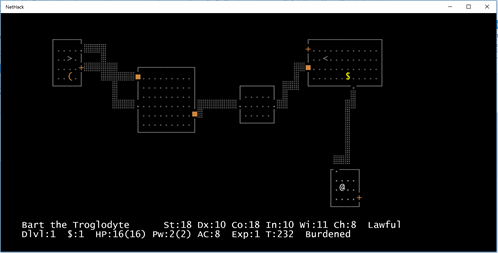 NetHack is a single player dungeon exploration game using a classical text based interface. Unlike many other dungeon crawlers, the emphasis in NetHack is on discovering the detail of the dungeon and not simply killing everything in sight - in fact, killing everything in sight is a good way to die quickly. Each game presents a different landscape - the random number generator provides an essentially unlimited number of variations of the dungeon and its denizens to be discovered by the player in one of a number of characters: you can pick your race, your role, and your gender.