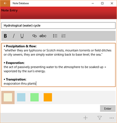 Create rich text notes and assign color categories. The notes are stored locally.