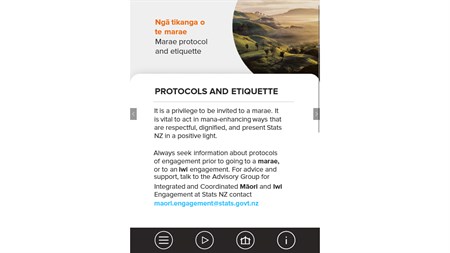 The app includes information on te reo Māori (the Māori language), tikanga (customs), mātāpono me ngā ūaratanga (principles and values), whakataukī (proverbs) and waiata (songs), to help staff understand more about our unique and shared cultural heritage.