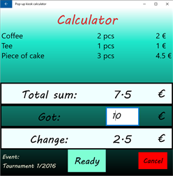 With this application you can calculate your sales, see statistics of your sales and if you connect external display or projector to your device, you can show the sale transaction to the customer as well. External display works as a price list at the same time.