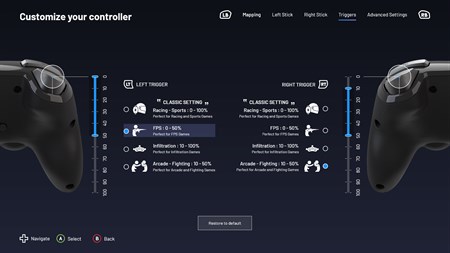 Button mapping Joysticks and triggers sensitivity Invert Left/Right joysticks 4 or 8 D-pad Vibration motors ON or OFF The NACON Pro Controller App offers an advanced gaming experience thanks to unique customisation options fitting all types of games: Racing and sports, FPS, Arcade, Fighting, Infiltration. NACON™ Pro Compact controller Designed for Xbox required to use the App. More information available on www.nacongaming.com.
