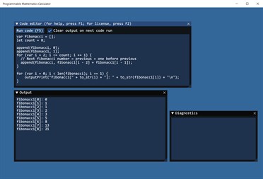 Programmable Mathematics Calculator is an advanced type of math calculator that allows you to type and run a program that performs arbitrary calculations on numbers.