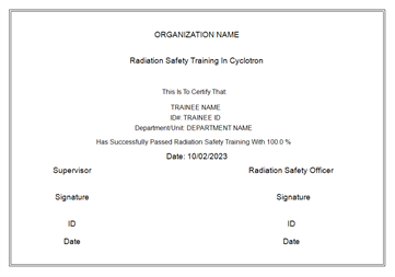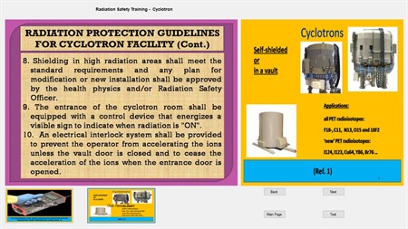 This software is an educational tool to instruct workers in cyclotron facilities on radiation safety. The software is interactive and contain a self-evaluation test. The educational material in this software is based on international standards e.g., IAEA and ICRP recommendations for radiation safety training.